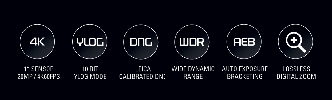 - 1” CMOS sensor, 20 MP, up to 4K @ 60 FPS, up to 100Mbit